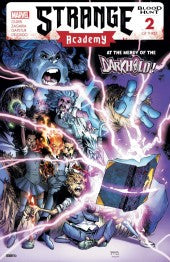 The vampire onslaught of BLOOD HUNT knows no bounds, reaching all the way down to New Orleans, Louisiana, home of the Strange Academy! Doyle Dormammu, Zoe Laveau, Shaylee Moonpeddle, Germán Aguilar, and Toth get embroiled in an adventure that will take them around the Marvel Universe and right into the center of the BLOOD HUNT action! Their mission: find the ancient Darkhold and cast the spell that will destroy all vampires. There’s just one problem… Agatha Harkness boldly transformed the Darkhold into a child in last year’s CONTEST OF CHAOS!